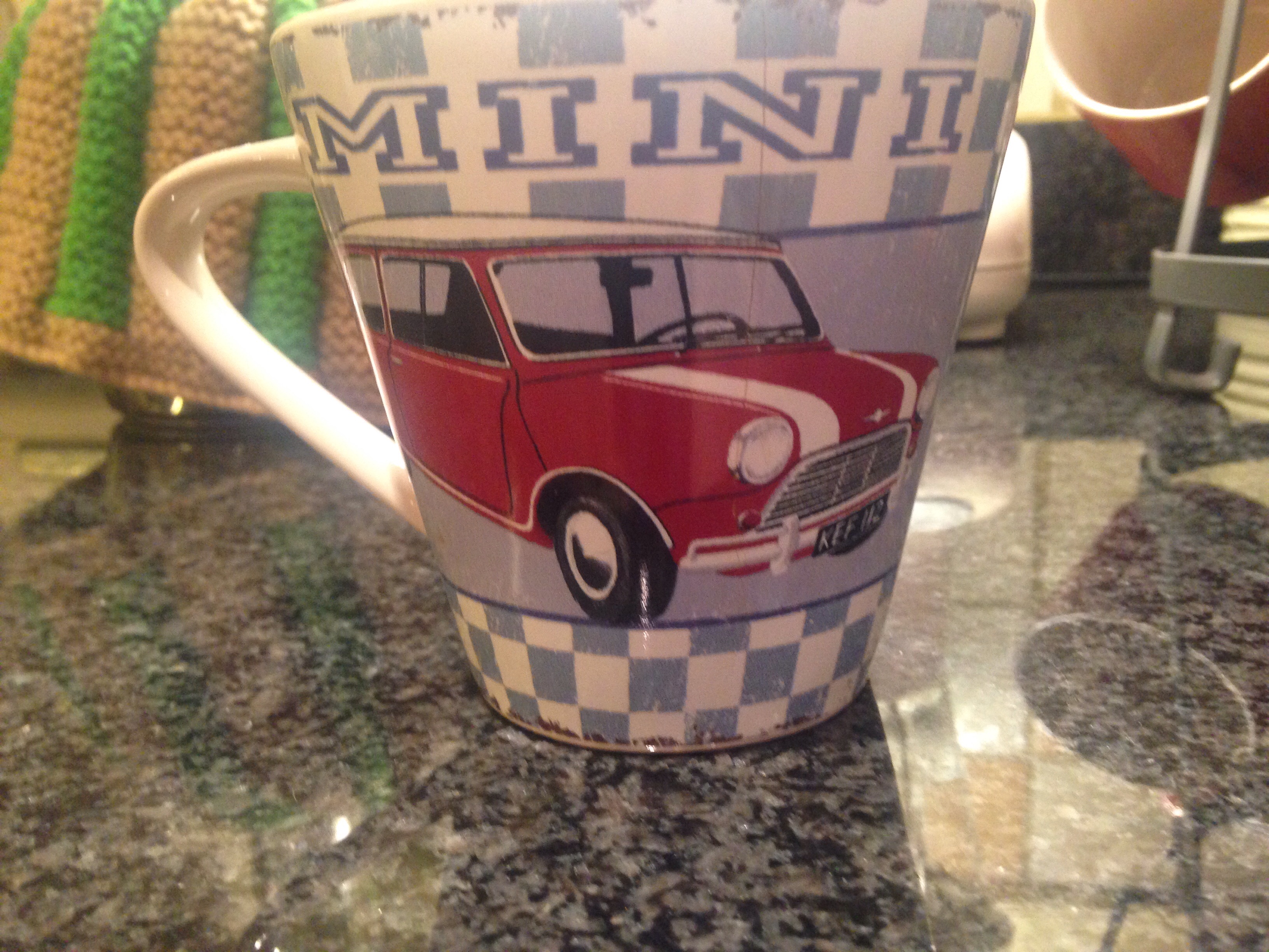 I have always liked to try new things, including skills I was really wasn’t really at all qualified for. We used to have an old red Mini, rather like this one on my cup.