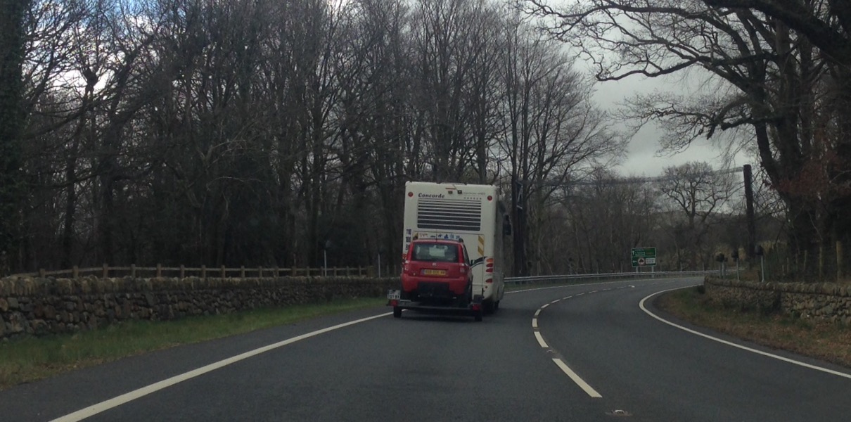Jean and I spent last weekend in beautiful, but wet, North Wales. A totally chilled weekend, where although not internet free, the so-called cares of modern society just fade into the background. It’s one long drive to North Wales, however, with our doggies. You cannot do it in less than 6 1/2 hours, so you just need to sit back and soak up the atmosphere. North Wales does have more than its fair share of nutter drivers! We were over taken by one complete ***** who couldn’t have possibly seen ahead past the 4 cars he overtook. Anyway we caught up with him at the next traffic lights whilst eating our jelly babies! Look how close this car is to the camper van, those crazy Welsh. And where’s the driver!?