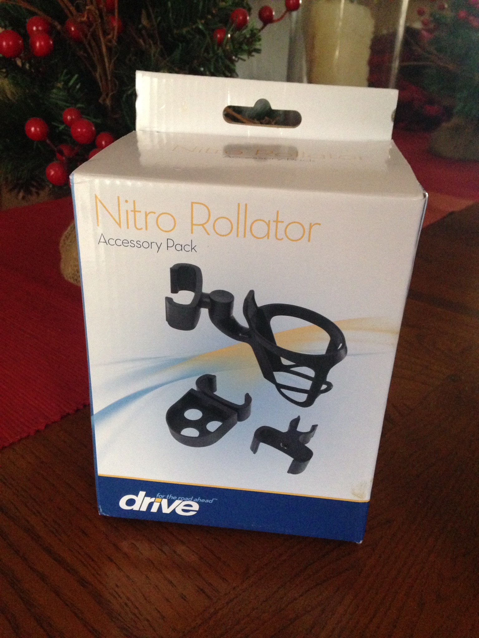 I have acquired a wicked new accessory pack for my rollator this week. A walking stick holder, cup holder and what appears to a Cornetto holder for 3 ice creams. However, there appears to be no drip tray!
