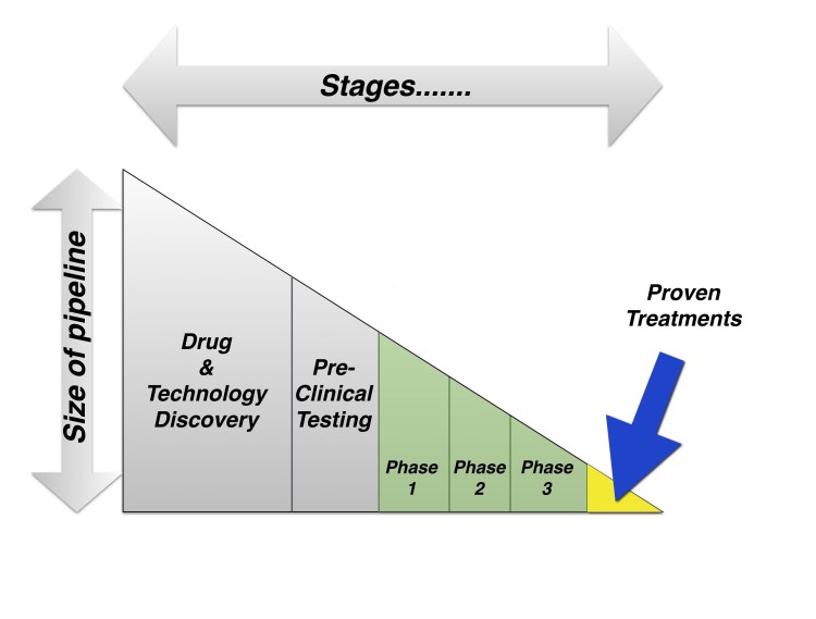 So let’s now look at the question as to why there appear to be not many, if any trials, in the UK. Keeping it short, there is actually a vast amount of work going on that is pre-clinical. “What is this Lee?” To understand why this is important, I need to describe a little about the trial process.