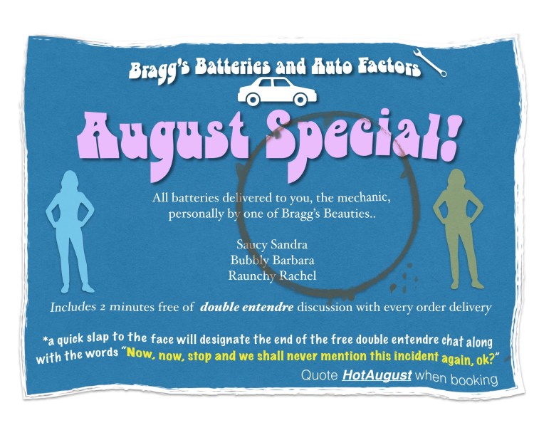 Due to the high costs of running a highly popular blog, read all over the world, and even on other planets, I have had to accept occasional sponsorship on my posts. So sorry, readers, I hope you don’t find this too intrusive! This week it is Bragg’s Batteries and Auto Factors. During your read you might see snippets of ads for his darn tacky company.