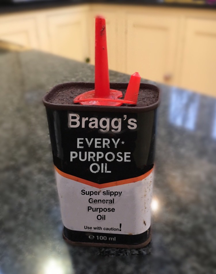 But with just one drop of Bragg’s Every Purpose Oil (on the hinge marked X above) all was sweet. It now operates beautifully. Job done!