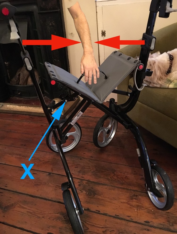 The first job was on one of my rollators. It was sticking a bit when you folded it up. Now, I hear you say, that doesn’t sound too bad. However, let’s examine the said evidence..
