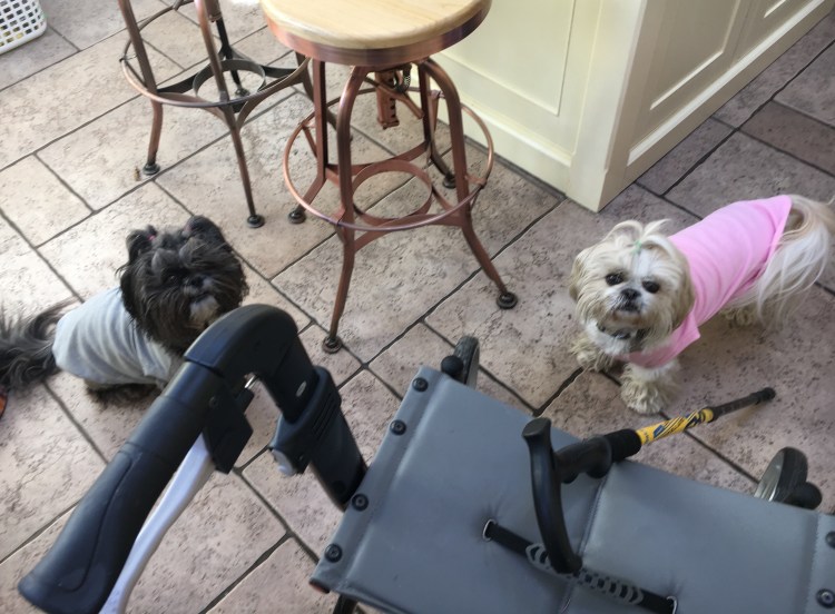 On arriving back home I noticed that one of dogs had got her hair caught in my rollator brackets when she ran under it during one attempt at trying to knock me over. However, this event was actually very timely! When I bent down to clear the hair from the underside, I noticed that two screws were nearly fully unwound from their receptacles! I immediately attended to this impending disaster!