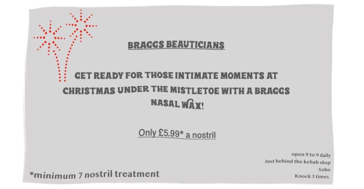 Wishing them a happy Christmas he gave them each a bottle of Bragg’s stomach custard, still fuming about their lack of lunch time control. However, he thought the gift of his latest heart burn remedy would endear them to him.