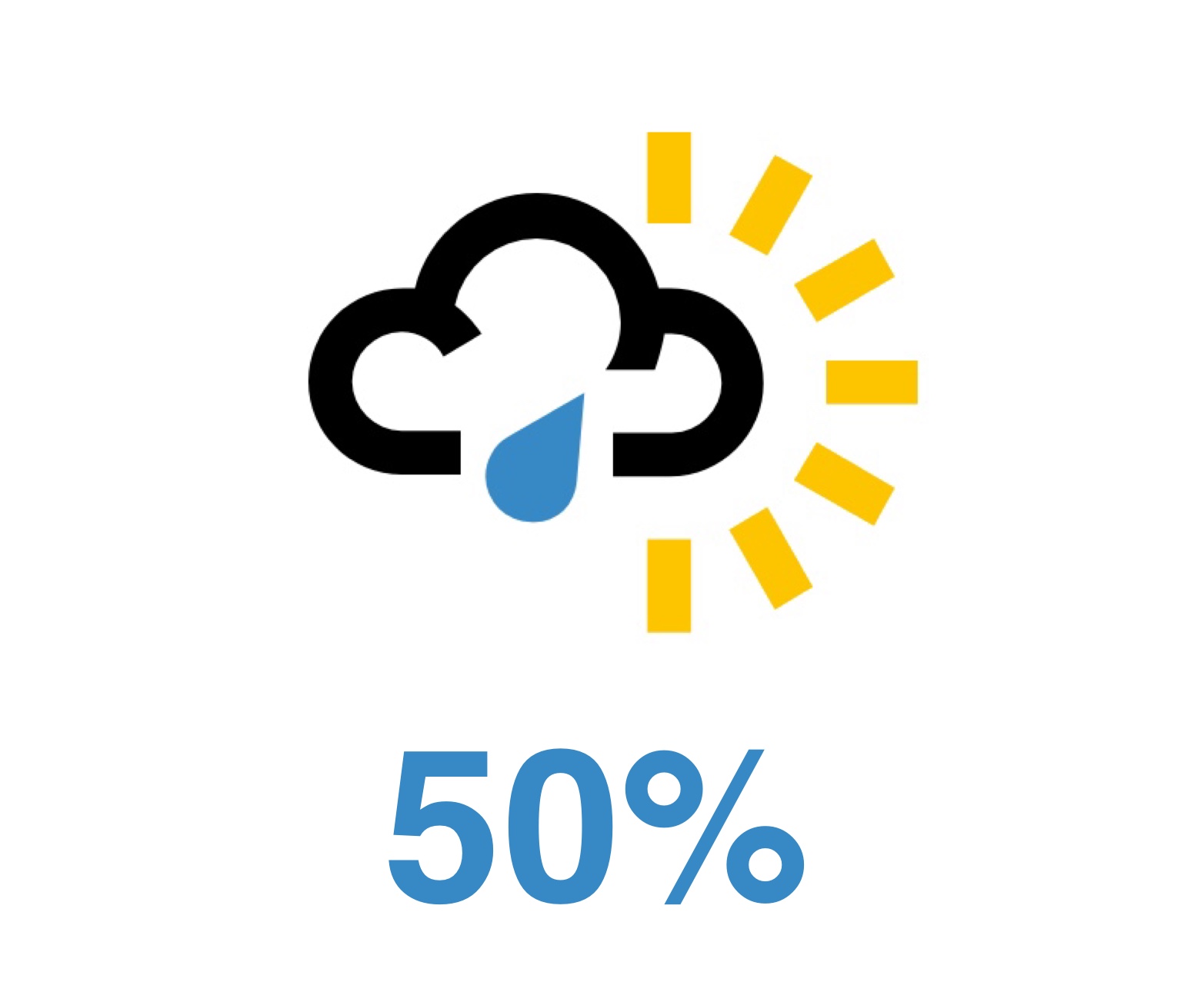 This little unassuming and familiar icon appears to inform us that there is a 50%, 50/50 or a 1 in 2 chance that the dreaded wet stuff will fall upon us from the sky today. Or does it?