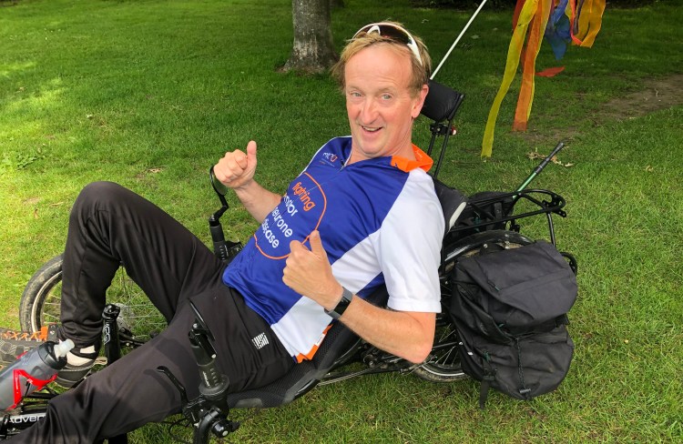 Well, as a lot of you are probably aware I ride a recumbent trike because of my MND. Here it is to remind you. Yes, it is a sun lounger in summer!